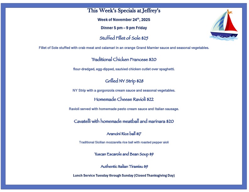 Lunch Tuesday - Wednesday & Friday - Sunday
